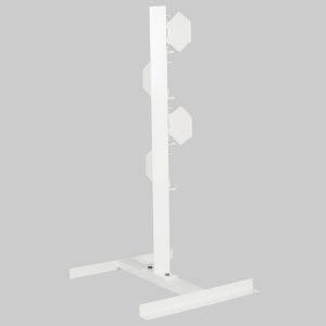 The MGM Dueling Tree with 4 Targets is a workhorse on the range. The post is an angle iron, solid steel. The target hinges are the same 1″ solid round bar design we use on our plate racks, so I know they are good for a lot rounds. And of course, we still use only premium 3/8″ thick HEXALLOY 550 steel for our 6″ MGM HEXPlate target faces – The MGM HEXPlate is a sure sign you’ve got a genuine MGM target.