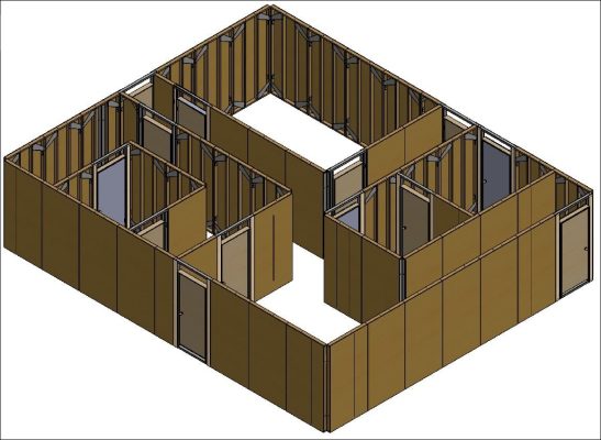 The MGM Simunitions Shoot House is easily reconfigurable, and legitimately portable. The wall panels use standard 2 x 4 lumber and standard 7/16” OSB (oriented strand board, or wafer board) as the main components. From there, we incorporate screws EXCLUSIVELY for all connections. Each panel connect to other panels with ONLY two ½” diameter bolts, and we provide battery powered industrial duty impact wrenches for the assembly! Additionally, at the locations where the ½” structural bolts go through the side boards (to connect to other panels) we have permanently installed ¼” thick steel plates that are 8” tall. These will prevent the panel edge 2 x 4s from becoming damaged, and make it virtually impossible for the assemblers to damage the panel during assembly or disassembly. The OSB sheet acts as a structural diaphragm on one side of the frame as is commonly done in commercial construction. We have also added steel reinforcement gussets (18” long) on the side opposite the OSB, at each corner, to further prevent “racking” of the panels. The racking (during handling and assembly/disassembly) is what truly damages wood structures and connections. We have thought this through. We have done this before. We have fixed the problems.