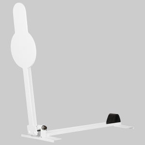 The Proper Popper 8″-12″ takes the traditional Pepper Popper to the tactical training realm. While you can use this HEXALLOY 550 target like a traditional Popper, its designed to ‘dressed up’. There is a rectangular tube across the back that will accept a standard 1″ x 2″ furring stick. Slide the stick through and snug the clamp bolt in place. The stick will support a shirt which tends to hide the 8” or 12” center of mass. The Proper Popper 8″-12″ ‘head’ is 6” wide on both target sizes. The narrow base of the popper (below the target area) has a piece of 3/8″ thick flat bar on the back of it to provide additional rigidity.