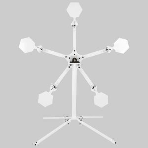 When one of the 3/8” HEXALLOY 550 target plates are hit, it creates an out of balance condition that causes the target holder assembly to spin. The direction of spin can change depending on where the next hit target comes from. Creative planning can increase the challenge. One idea is to put a no-shoot target low and centered to guarantee the first hit will create the unbalanced condition.